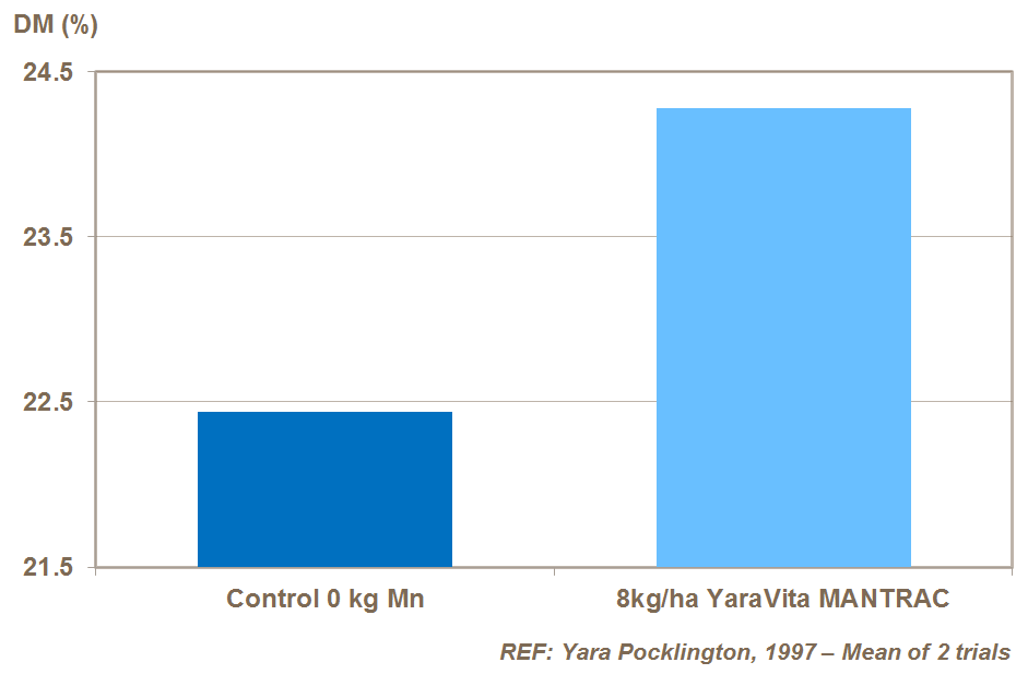Severe manganese deficiency can also significantly reduce dry matter content.