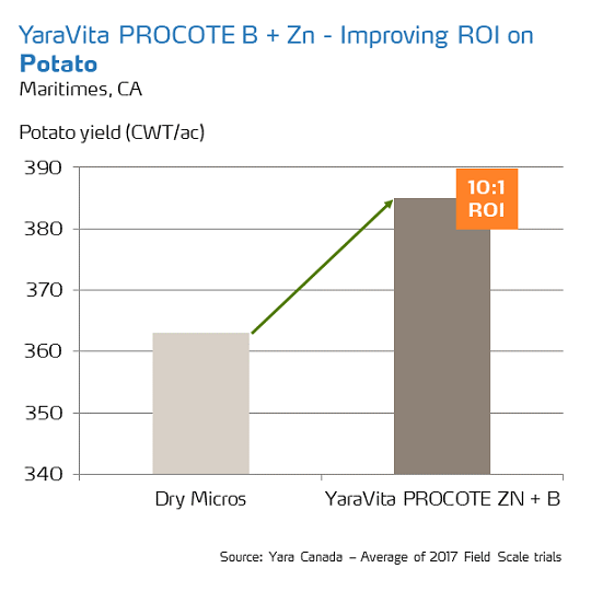 YaraVita® PROCOTE™ is a dealer-applied proprietary micronutrient coating that leverages the granular fertilizer to evenly and efficiently distribute essential micronutrients to growing crops. With YaraVita PROCOTE a farmer’s dry fertilizer program becomes the platform to deliver complete nutrition without complexity. YaraVita PROCOTE is available in Boron, Copper, Manganese, Zinc and blends of BCMZ and BMZ.